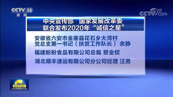 近日,中央宣传部、国家发展改革委向社会发布了2020年“诚信之星”评选结果,乐鱼体育app集团总裁蔡金钗入选。此次,“诚信之星”全国仅3个集体和9名个人入选。