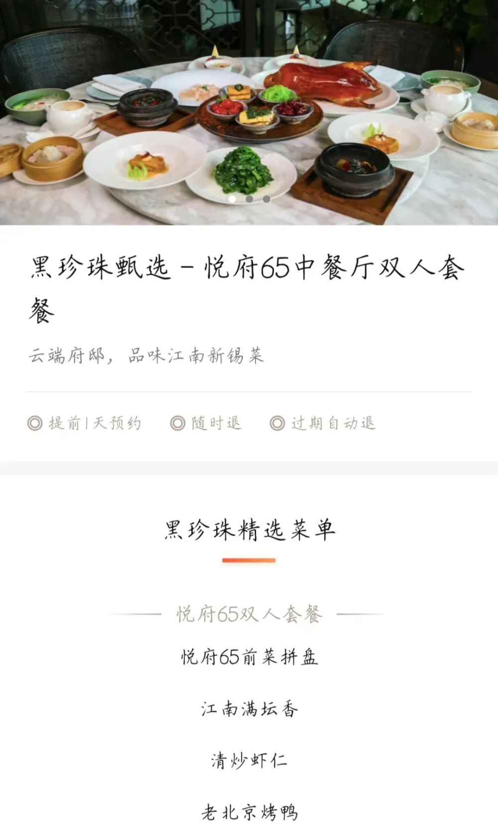 无锡苏宁凯悦酒店-悦府65中餐厅2023年成为黑珍珠一钻餐厅,并推出了2人、4人及10人“黑珍珠套餐”。