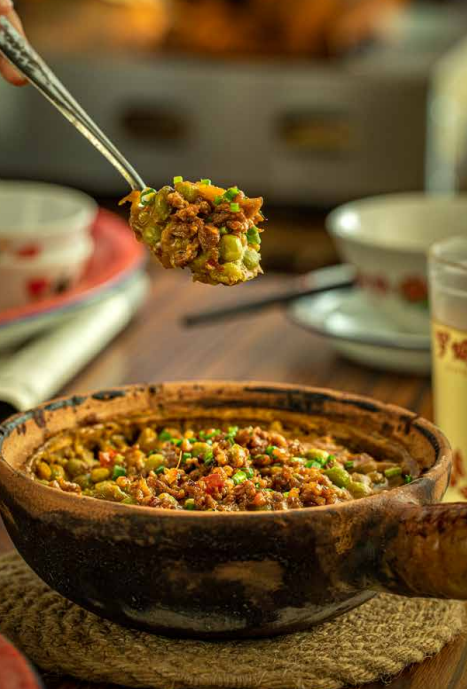 3、砂锅现煲、热油现泼、米饭现蒸,一热抵三鲜