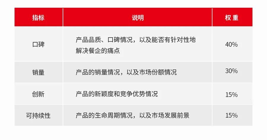 该奖项旨在评选出在餐饮上游供应链企业中,销量高、口碑好、品质佳的爆款产品,要求这类产品质量佳、口碑好,并且在餐饮市场上引起了不错的反响,是各个维度都很能打的金质产品。