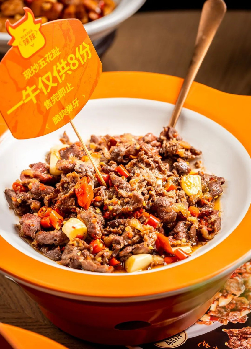 在招牌产品打造上,湘辣辣并没有拘泥于传统湘菜小炒的做法,而是融入了潮汕火锅牛肉分部位的做法。根据牛肉“吊龙”“嫩肉”“五花趾”这3个不同口感的部位延伸出了3道招牌菜。